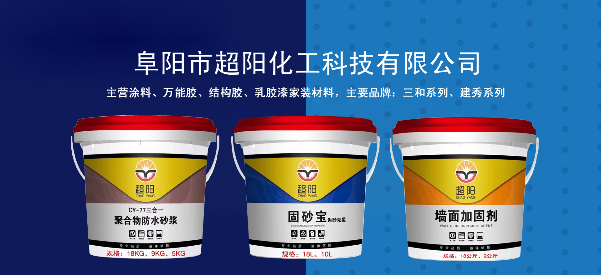 主營超陽結構膠系列、超陽泡沫膠系列、超陽玻璃膠系列、超陽防水系列、超陽固沙寶、超陽黃色墻固系列、超陽透明防水膠、超陽透明墻固、超陽液體卷材系列產品